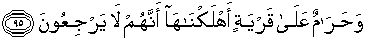 “Sungguh tidak mungkin atas (penduduk) suatu negeri yang telah Kami binasakan, bahwa mereka tidak akan kembali (kepada Kami).” (QS. Al-Anbiya ayat 95)