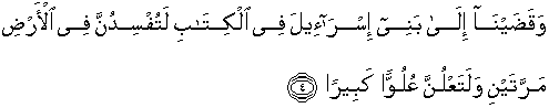 4. ‘Dan Kami tetapkan terhadap Bani Israil dalam kitab itu, “Kamu pasti akan berbuat kerusakan di bumi dua kali dan pasti kamu akan menyombongkan diri dengan kesombongan yang besar.”’