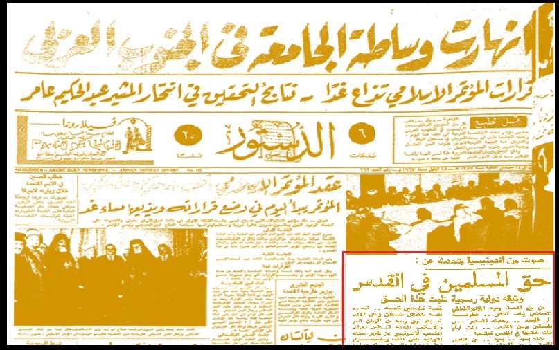 Koran Ad-Dustur Yordania pada tanggal 18 September 1967 melaporkan wawancara dengan Prof. Kahar Muzakkir, yang mengungkapkan dukungan Indonesia terhadap perjuangan Palestina.