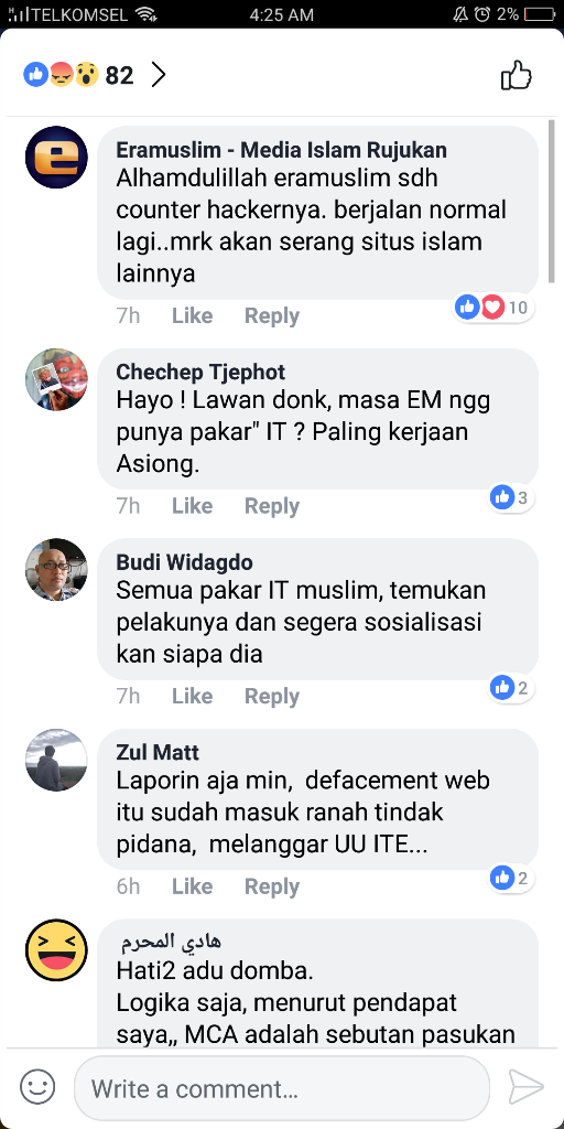 Alhamdulillah, Makaru Wa Makarallah, hanya butuh waktu satu jam, Tim IT Eramuslim mampu merebut kembali kendali dan mengembalikan laman utama tersebut sehingga para pembaca setia dapat kembali mengakses kanal kesayangan kita ini. Kami juga mendapatkan informasi jika beberapa kanal berita keislaman lainnya juga mendapat serangan yang sama dan sampai artikel ini ditulis masih belum bisa dinormalkan.